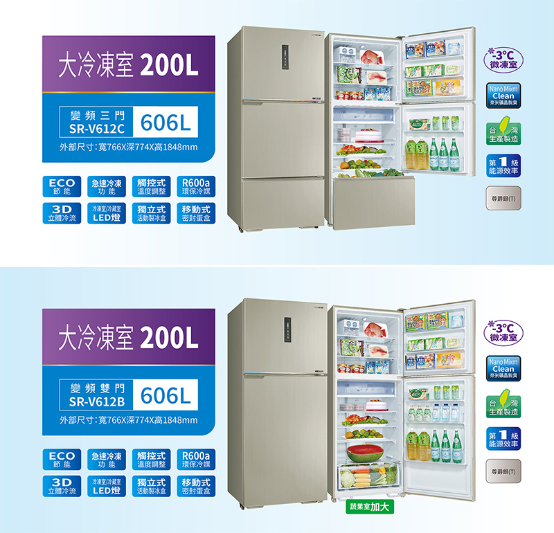 SANLUX台灣三洋 606公升變頻三門電冰箱 SR-V612C