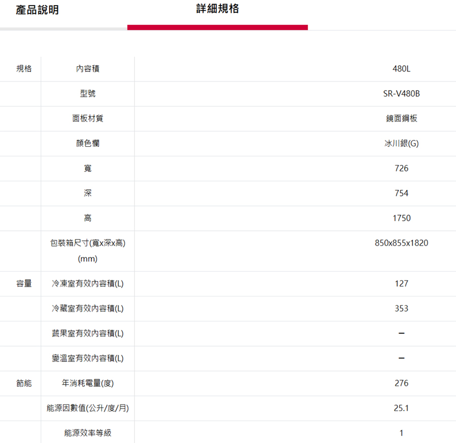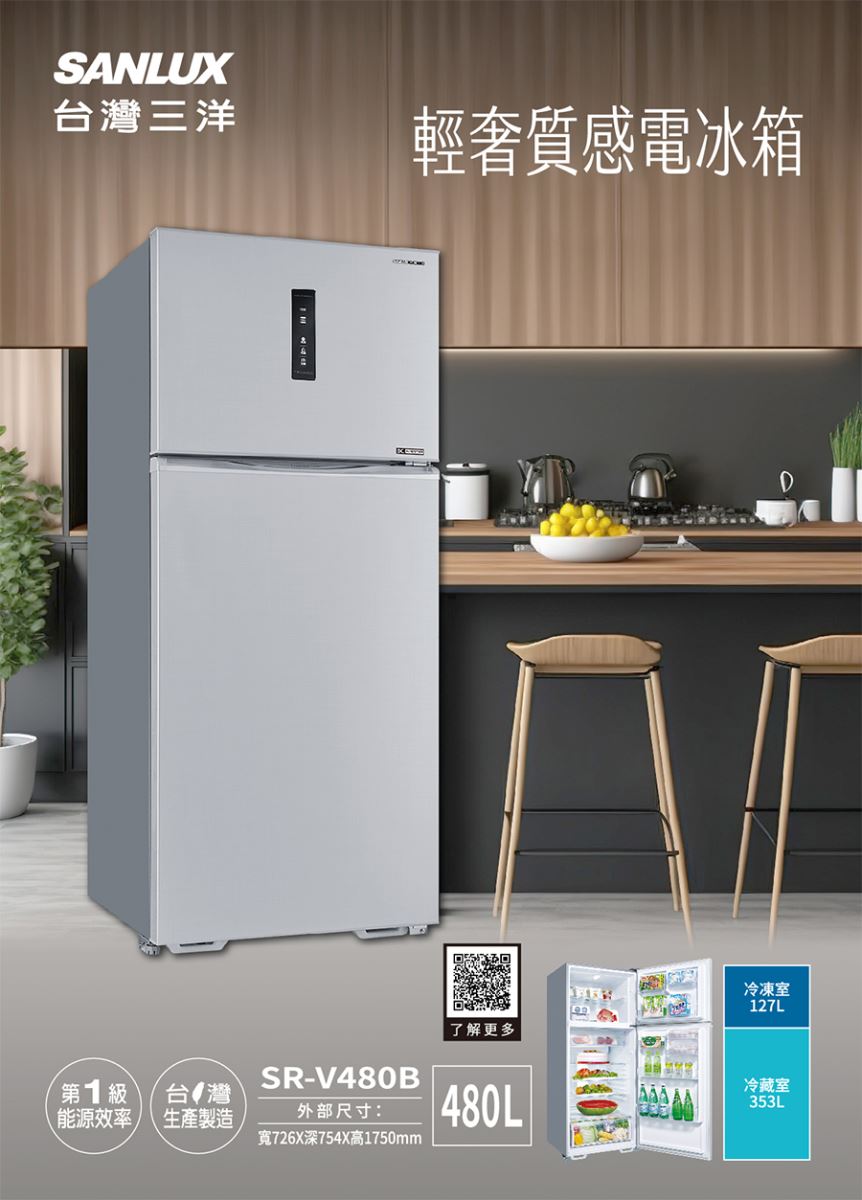SANLUX台灣三洋480L變頻雙門電冰箱SR-V480B