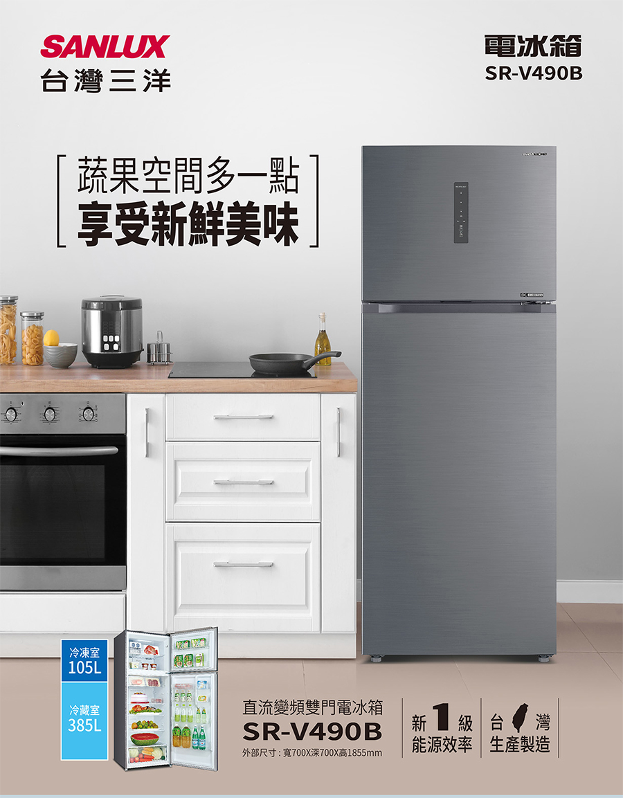 SANLUX台灣三洋 490公升變頻雙門電冰箱 SR-V490B(星岩灰)