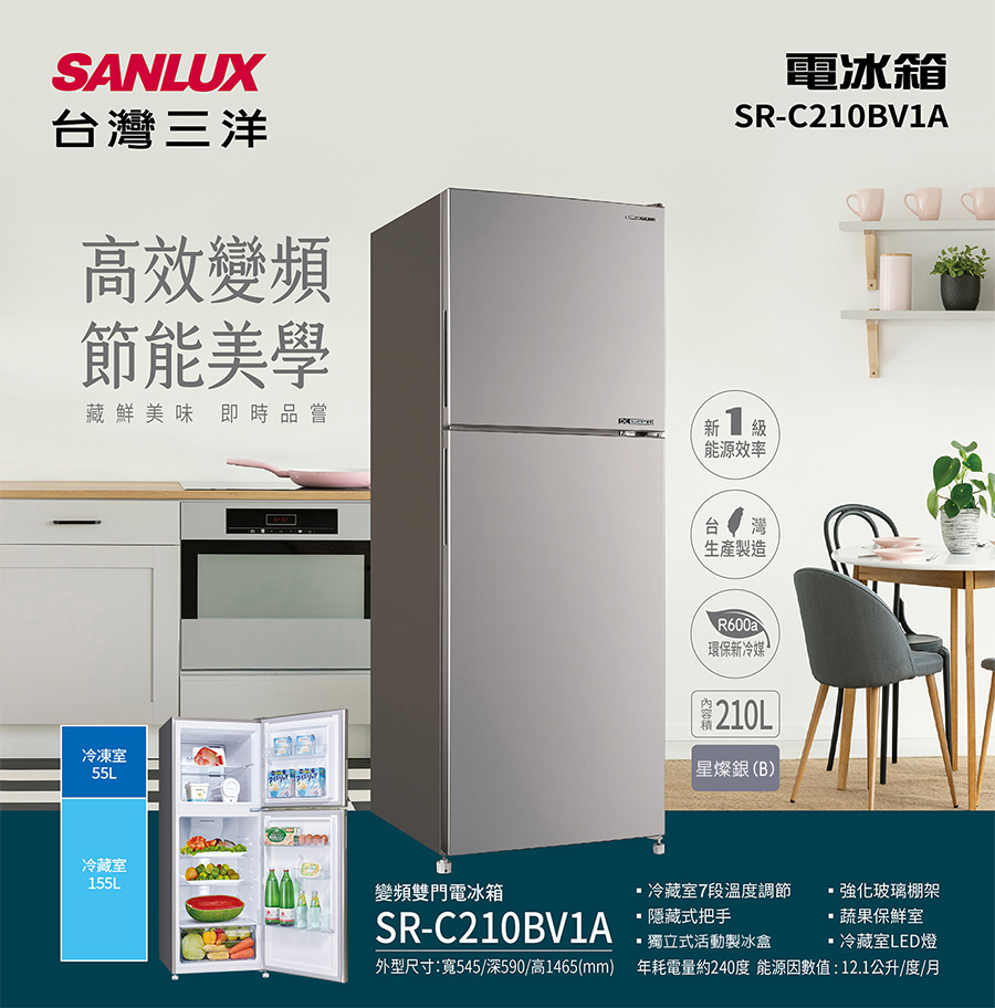 SANLUX台灣三洋 210L變頻雙門電冰箱SR-C210BV1A