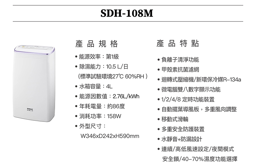 SANLUX台灣三洋10.5公升除濕機 SDH-108M