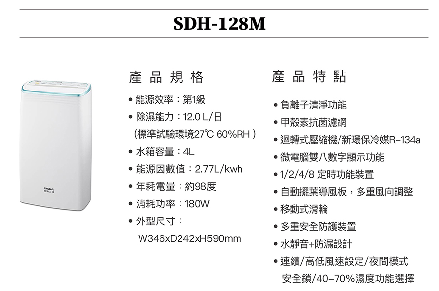 SANLUX台灣三洋12公升除濕機 SDH-128M